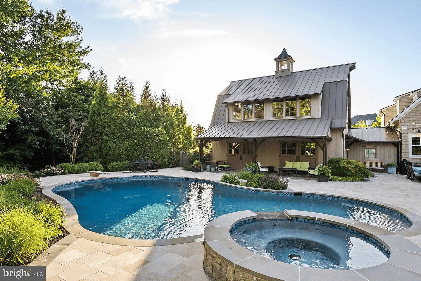The hickory floors tell you first. Before the 11-foot ceilings register, before the Marvin wood windows frame the light, before the Vermont slate roofline and copper gutters announce themselves from the outside—the solid hickory underfoot tells you this house was built to outlast its owners. You're standing in the foyer of 6529 Sothoron Road, and architect Richard Foster and The Galileo Group have done something rare in a market flooded with new construction: they've built a home that feels like it's been here for generations, even though it was completed in 2015. The materials are the reason. Slate. Copper. Hickory. Marvin wood. These are not choices made for trend or timeline. They're choices made for permanence. The main level unfolds with the quiet confidence of a traditional floor plan that knows exactly what it is. The great room connects to a family kitchen designed for daily life, with a butler's pantry behind it ready for the evenings when daily life turns into an event. A library and office anchor the quieter wings. Six bedrooms, seven full and two half baths across three finished levels, each bedroom suite generous, private, and finished with oversized closets and full baths. The primary suite upstairs is the anchor: vaulted ceilings, a fireplace, custom cabinetry, a cedar-lined seasonal closet, and a spa bath that elevates the daily routine into ritual, zero-threshold steam shower, heated marble floors, and a freestanding tub with spa jets. Three more bedroom suites line the upper level, and a fourth-floor loft with built-in beds and a full bath adds charm for children or guests who want their own territory. The lower level opens with natural light, an exposed brick wall in the gym, and a family and media room with surround sound. The Lutron lighting system runs the house. Copper plumbing and dual water heaters handle the infrastructure. A completed elevator shaft to three levels ensures the home is ready for multi-generational living whenever the moment arrives. And just beyond the breezeway, the bespoke timber-frame annex, a storybook structure with flagstone and pine floors, a cupola, and its own garage, adds a dimension of character and function that no standard guesthouse can match. Outside, the 1.2 landscaped acres include a heated pool and spa, a hot tub, extensive hardscaping, terraces, patios, and the kind of mature, private grounds that make Salona Village one of the most desirable pockets in all of McLean. You sit on the terrace at dusk, the pool lit, the annex glowing through the trees, and the house behind you doing what Foster and Galileo designed it to do—standing quietly, built to last, and asking for nothing but time.
