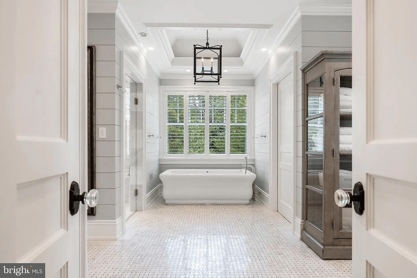 Primary Suite — Steam Shower, Heated Marble & Cedar Closet – A vaulted ceiling, fireplace, custom cabinetry, a cedar-lined seasonal closet, and a spa bath with zero-threshold steam shower, heated marble floors, and freestanding jetted tub compose the most complete primary retreat in the McLean market.