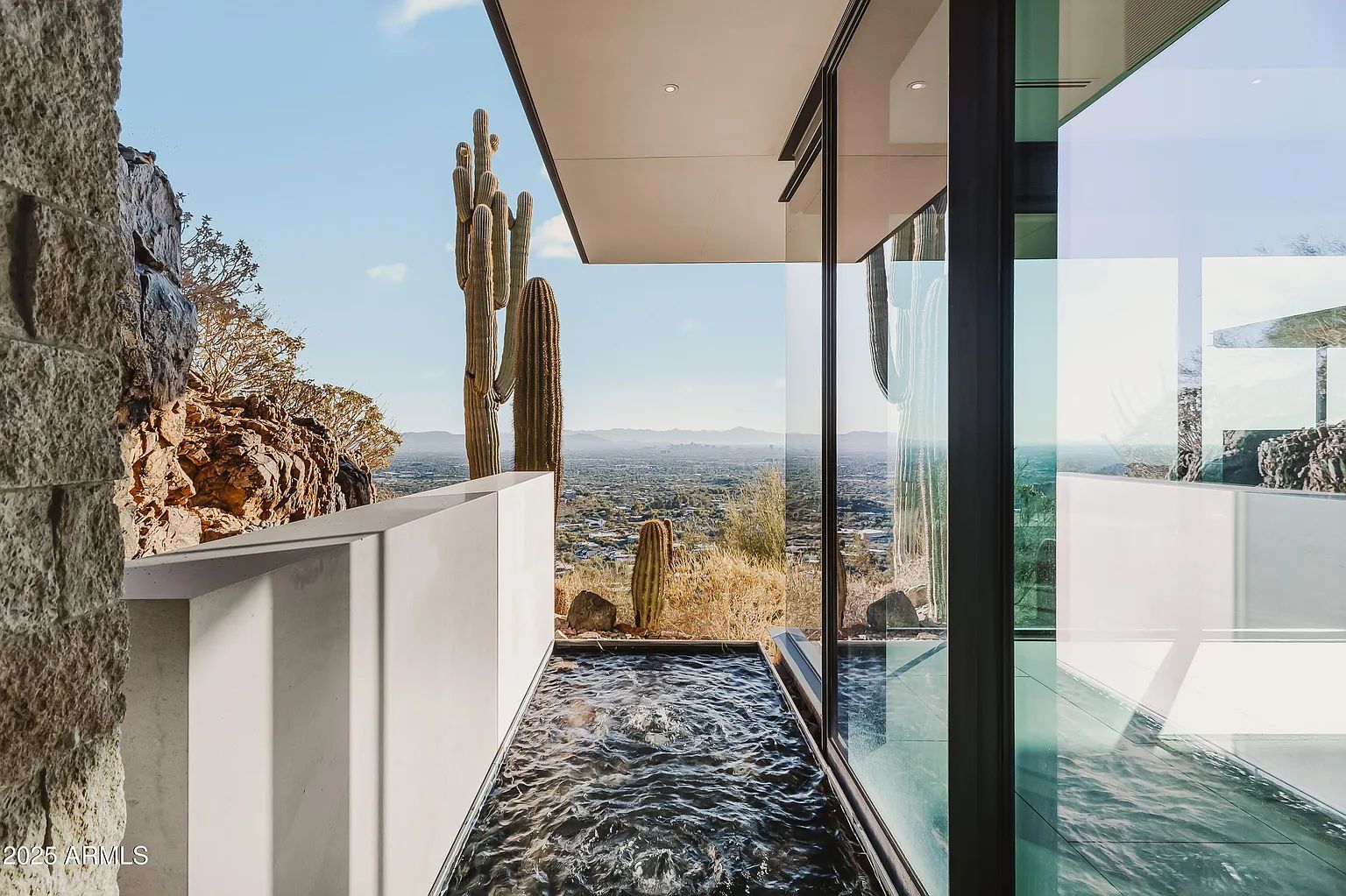 You wake to the quiet glow of the desert sky, the first light spilling across the mountains and pouring through walls of glass as if the landscape itself has stepped into your bedroom. You pad across cool Neolith floors, the home still hushed, and step onto your private terrace where the air feels crisp and impossibly still. By midmorning, you’re swimming slow laps in the rooftop pool, the valley stretching out beneath you like a canvas of color and light. Later, you drift between the refined lounges and the shaded outdoor spaces, every corner designed to showcase a new angle of the mountains. In the afternoon, you retreat to the glass-wrapped office pavilion, where the 360-degree views make even a few minutes of work feel like a privilege. As sunset hits, the sky ignites, city lights flicker to life, and you welcome guests for drinks at the steel-clad bar before screening a film in the Dolby Atmos theater. The night ends with an outdoor shower under the stars, warm water and cool air mixing as you take in the silence of your private mountainside. Here, every moment feels intentional. Elevated. Effortless.