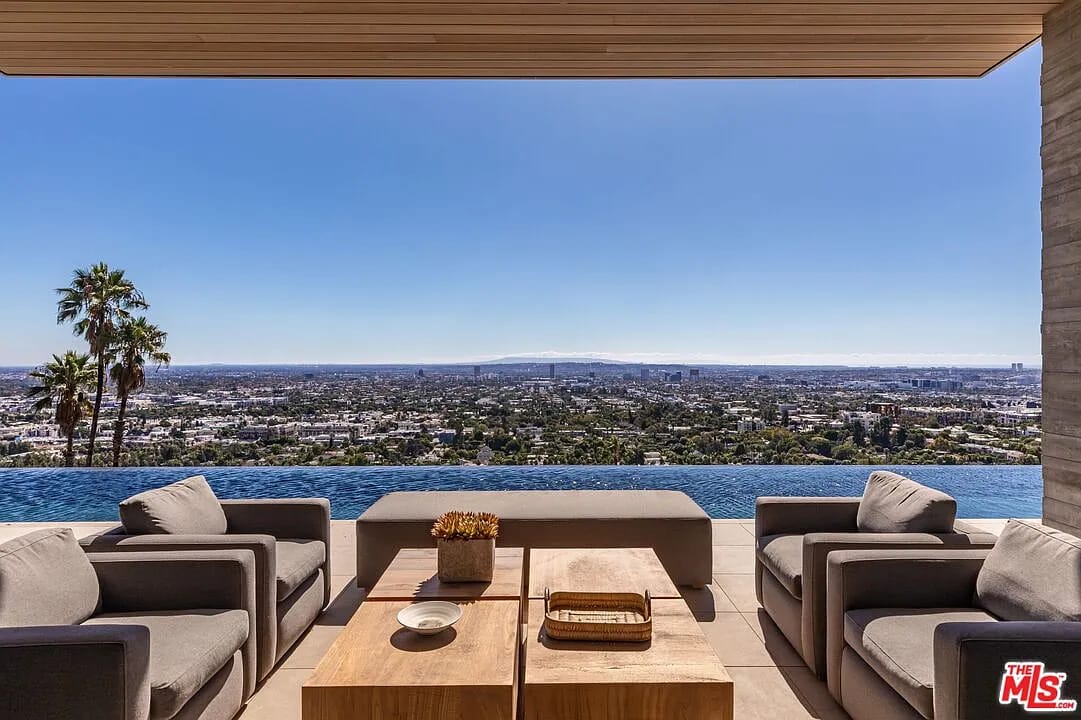 You wake to the quiet glow of the city far below, a soft shimmer stretching from downtown to the Pacific—your own private panorama suspended above Los Angeles. Stepping onto your terrace, the morning air is cool against the warm stone beneath your feet, and the only sound is the slow echo of water cascading down the vertical feature that rises beside the grand staircase. After coffee in the study, sunlight pours through steel-framed windows as you move from room to room, each volume opening to views that feel cinematic in scale. Late morning is spent by the infinity pool, where Itauba decking warms under the sun and a breeze carries the scent of native oaks from the hillside. Friends arrive for an easy lunch at the pool bar, and the entire lower-level recreation zone—screening room, bar, billiards lounge—comes alive in the afternoon. As dusk settles, the city lights ignite beneath you while you sit by the sunken fire pit, the sky turning deep gold over the ocean. At night, you retreat to the primary suite: dual baths, private study, and a sense of elevation that feels almost otherworldly. Here, you don’t just live above L.A.—you command it.