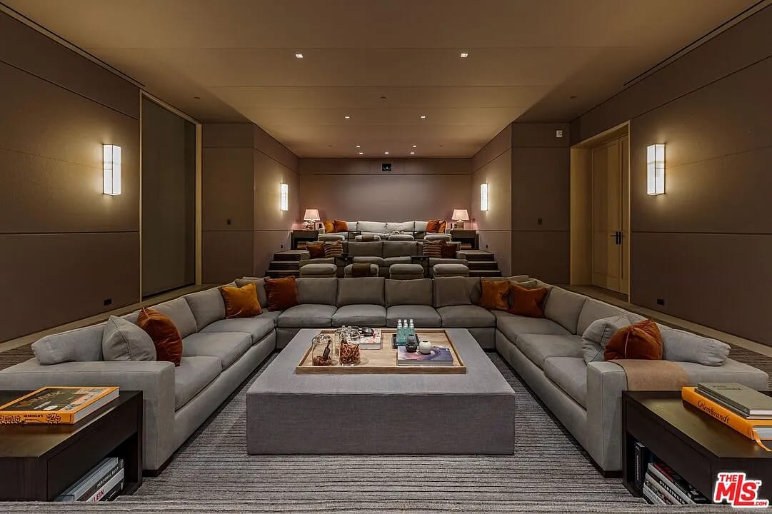 Expansive recreation level, featuring a state-of-the-art screening room, billiards lounge, bar, and ballroom-convertible motor court.