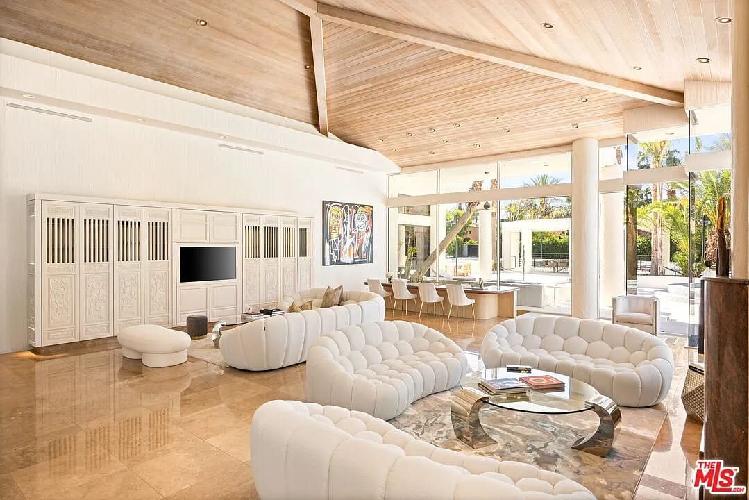 The moment you step outside, the desert air still cool from the night, you feel the tranquility of a private world designed entirely around pleasure, beauty, and calm. You begin your morning wandering past the koi ponds, the soft sound of moving water echoing under vaulted skies, before settling with coffee beside the zero-edge pool as the mountains turn gold. By midday, friends arrive and the estate begins to transform—hibachi flames rising from the sunken bar, wood-fired pizza crisping in the outdoor kitchen, laughter carrying beneath the palm trees. You drift between shaded lounges and the silken water of the pool, never once hearing a neighbor, never once feeling overlooked. As the sun drops, you walk across the grounds to your hidden 5,000-bottle wine cellar, choosing a vintage for dinner in the private tasting room. Later, the night ends on your professional tennis court, lights glowing, warm air settling around you. When you finally retreat to the main house, walls of glass reflecting the stars, you feel it again—the unmistakable quiet of a home that is not just luxurious, but deeply, artfully yours.