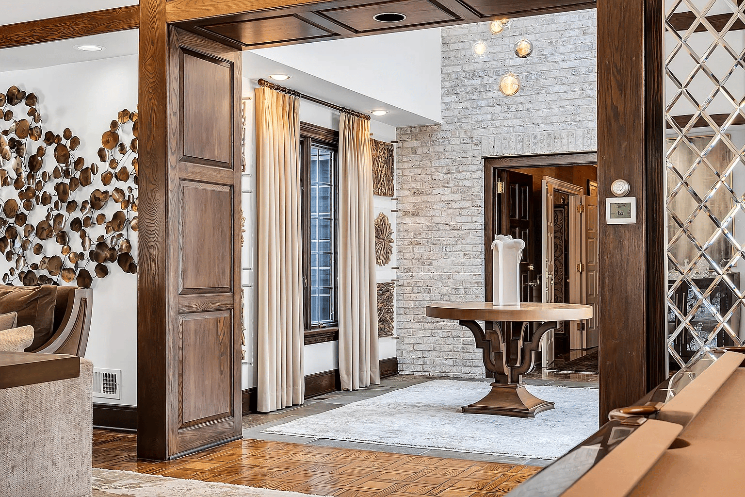 European Craftsmanship on 10.1 Acres – A stately brick residence crowned by slate dormered rooflines spans nearly 12,000 square feet of timeless architecture, with a double-height foyer, rich millwork, curated sightlines, and a sense of proportion that defines every room.