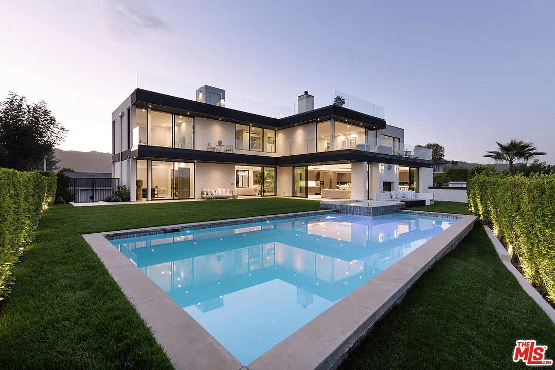 Resort-Style Pool, Spa & Fire Pit Lounge – The backyard delivers a full outdoor living experience: a sparkling pool and spa, built-in BBQ and outdoor kitchen, expansive lawn, and a fire pit lounge designed for California sunsets and late-night conversation.