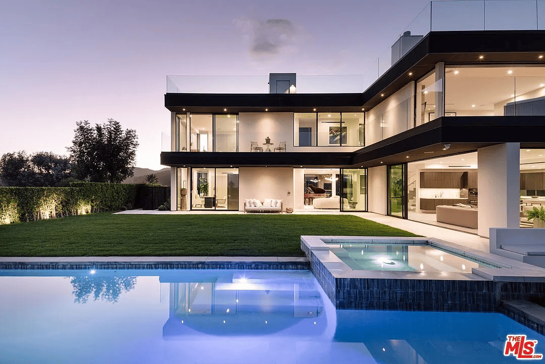 Panoramic ocean-to-downtown views, Fleetwood glass walls, and a 1,600-square-foot rooftop deck crown this 2020-built Brentwood Hills contemporary—6,468 square feet of open-plan luxury with a resort-style backyard, private theater, wine cellar, and smart home automation on one of the Westside's most elevated streets.